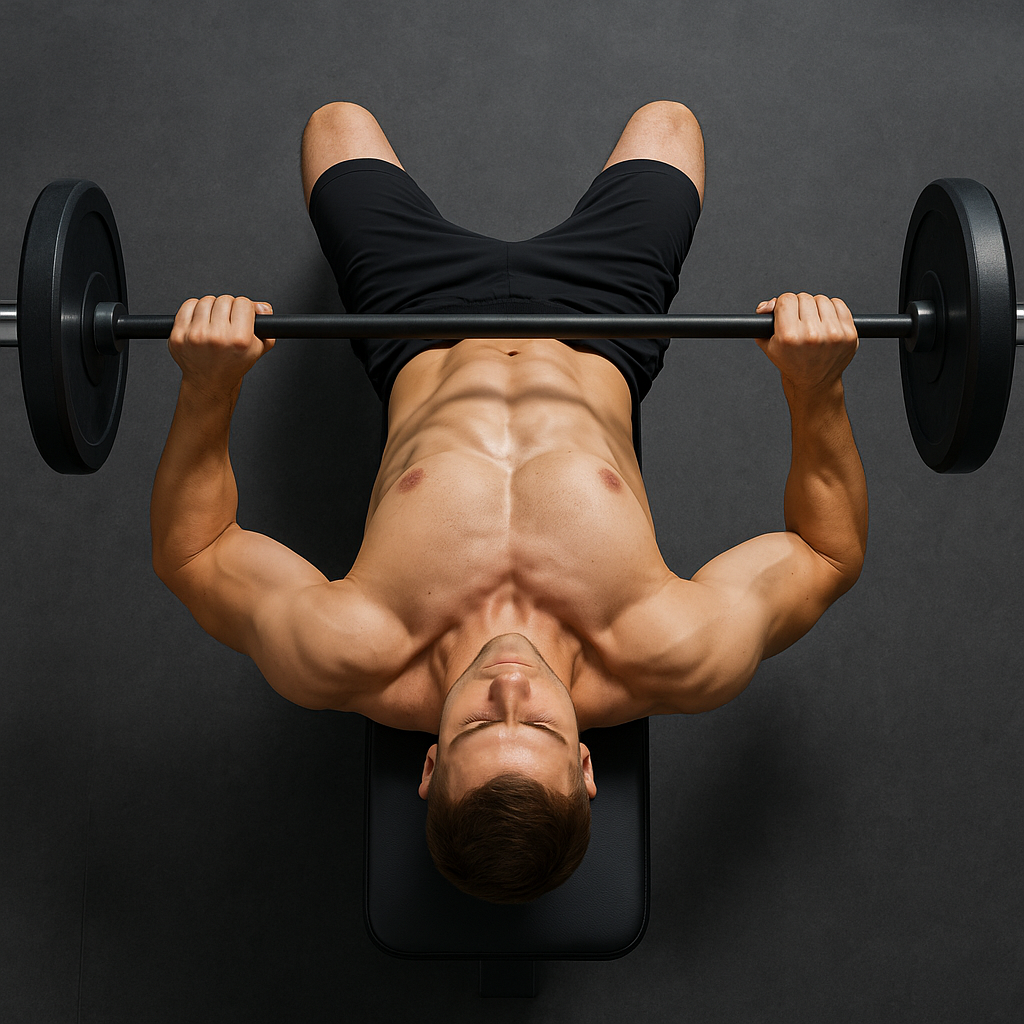 벤치프레스는 대흉근(가슴), 삼두근, 전면 삼각근을 사용하는 상체 푸시 운동이에요.