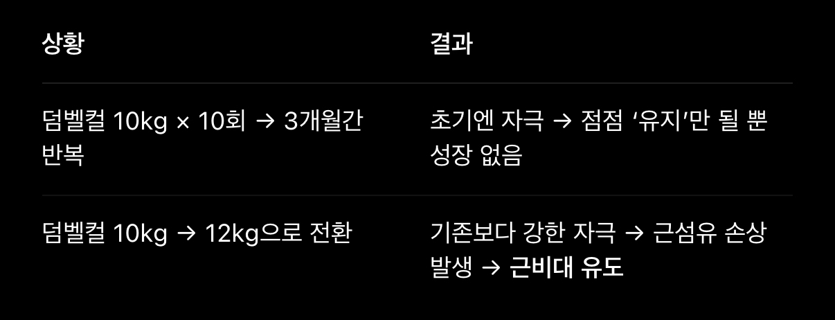 • 같은 무게 반복 → 근육이 적응 → 성장 정체